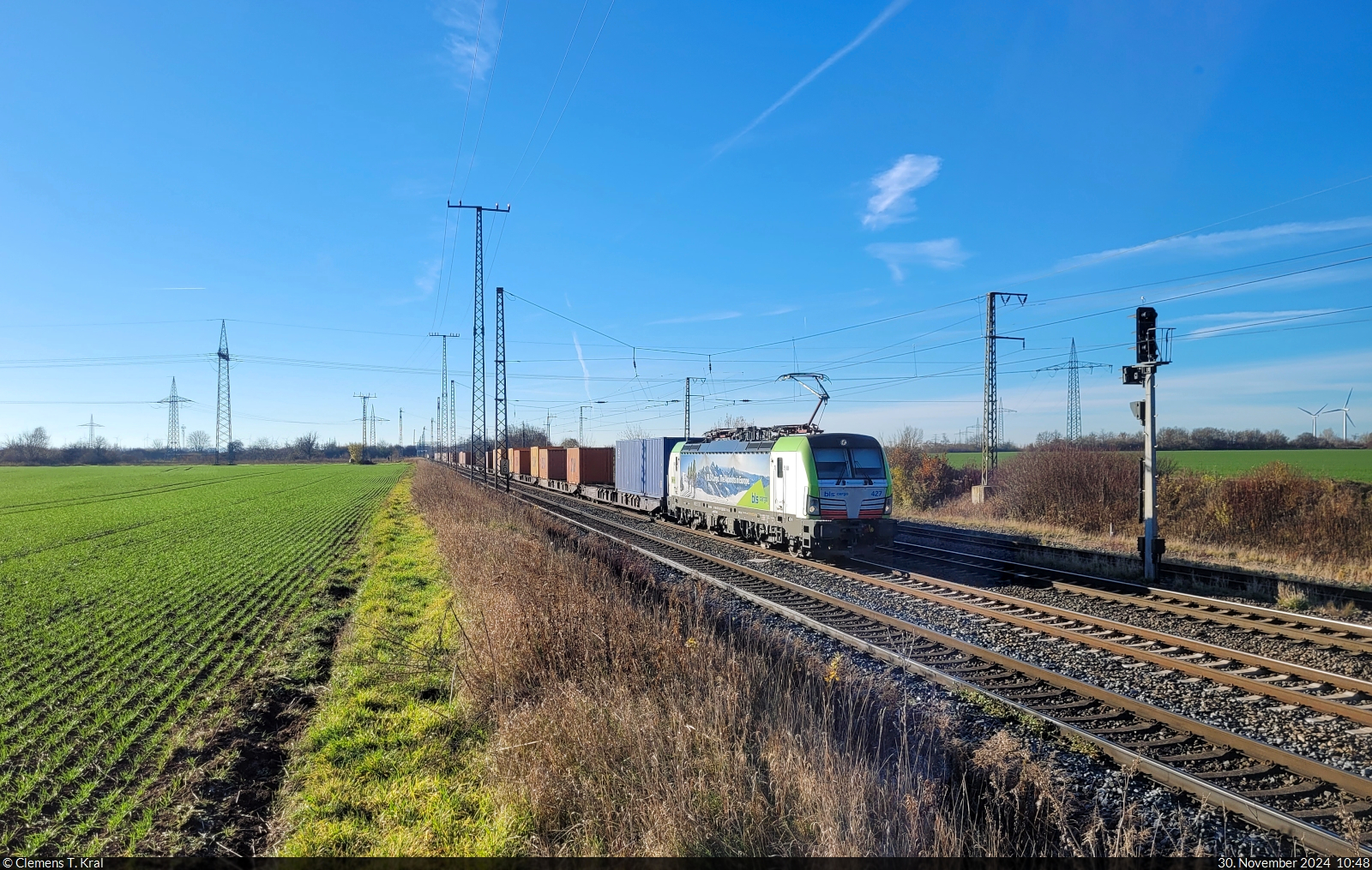 #DBCargofährt: Ein KLV-Zug fährt mit 6193 338-1 (Siemens Vectron) durch Großkorbetha in nördlicher Richtung.