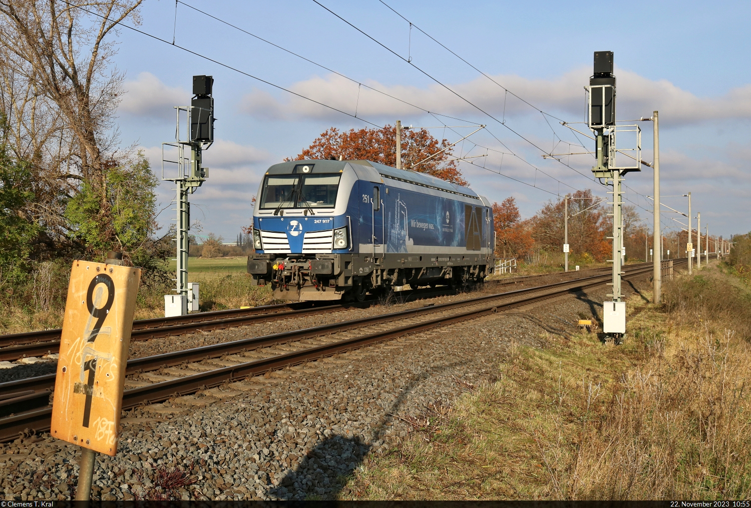 247 907-9 "Helena" (Lok 251 | Siemens Vectron DE) unterwegs als Tfzf am km 9,1 bei Schkopau Richtung Merseburg Hbf.