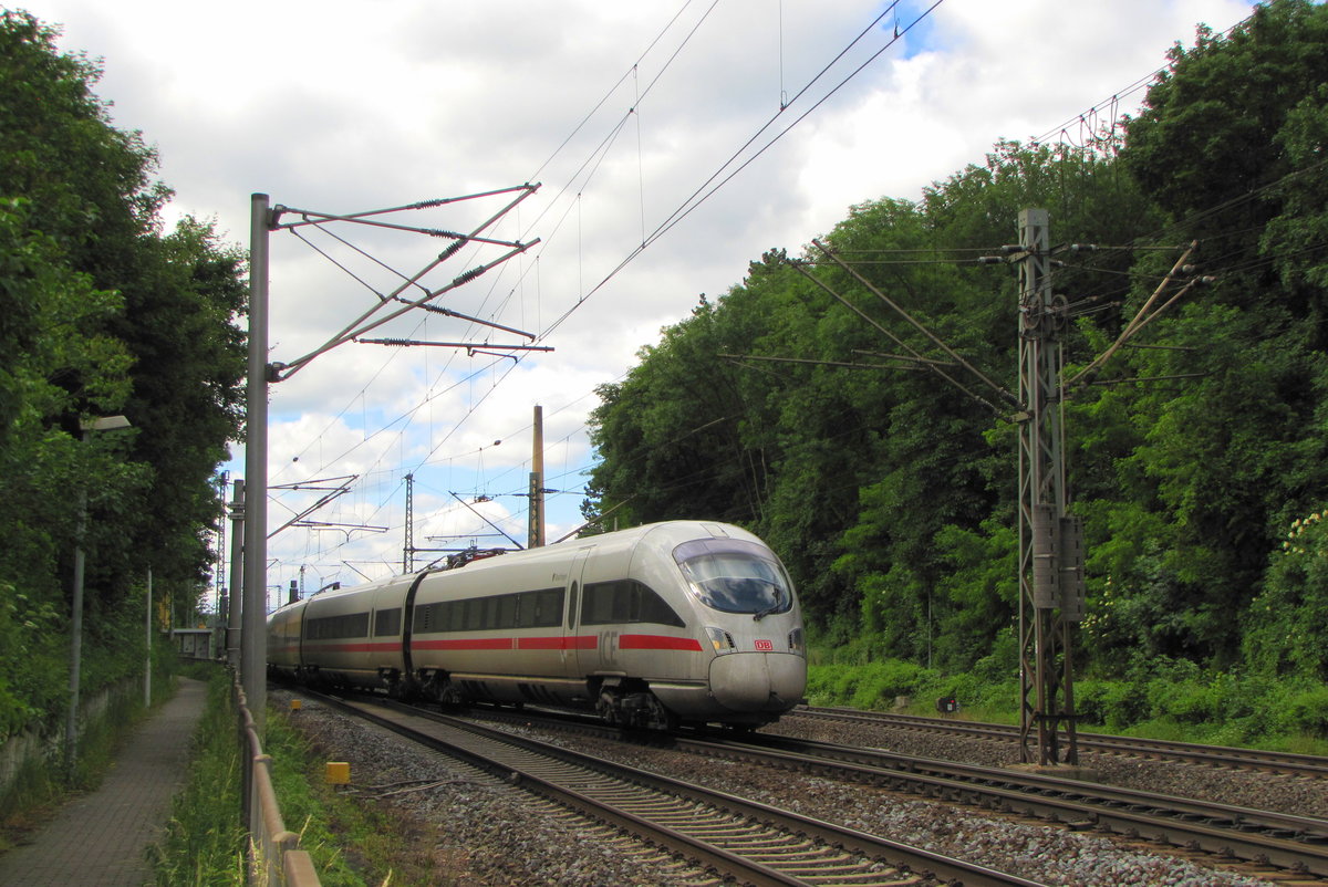 Von Berlin nach München in unter vier Stunden. Davon kann dieser Zug nur träumen. Erstes Hemmnis ist Führung dieses Zuges über Leipzig statt über Halle. Weiter geht es nach Erfurt. Dann allerdings nicht über die VDE8.1 sondern über die Thüringerbahn über Eisenach, Frankfurt, Stuttgart nach München. Einge Züge dieser Linie beginnen sogar schon in Hamburg und fahren wie ein "Z" durch Deutschland. Tz "Heppenheim/Bergstraße" als ICE691 (Berlin - München) bei Ingersleben.