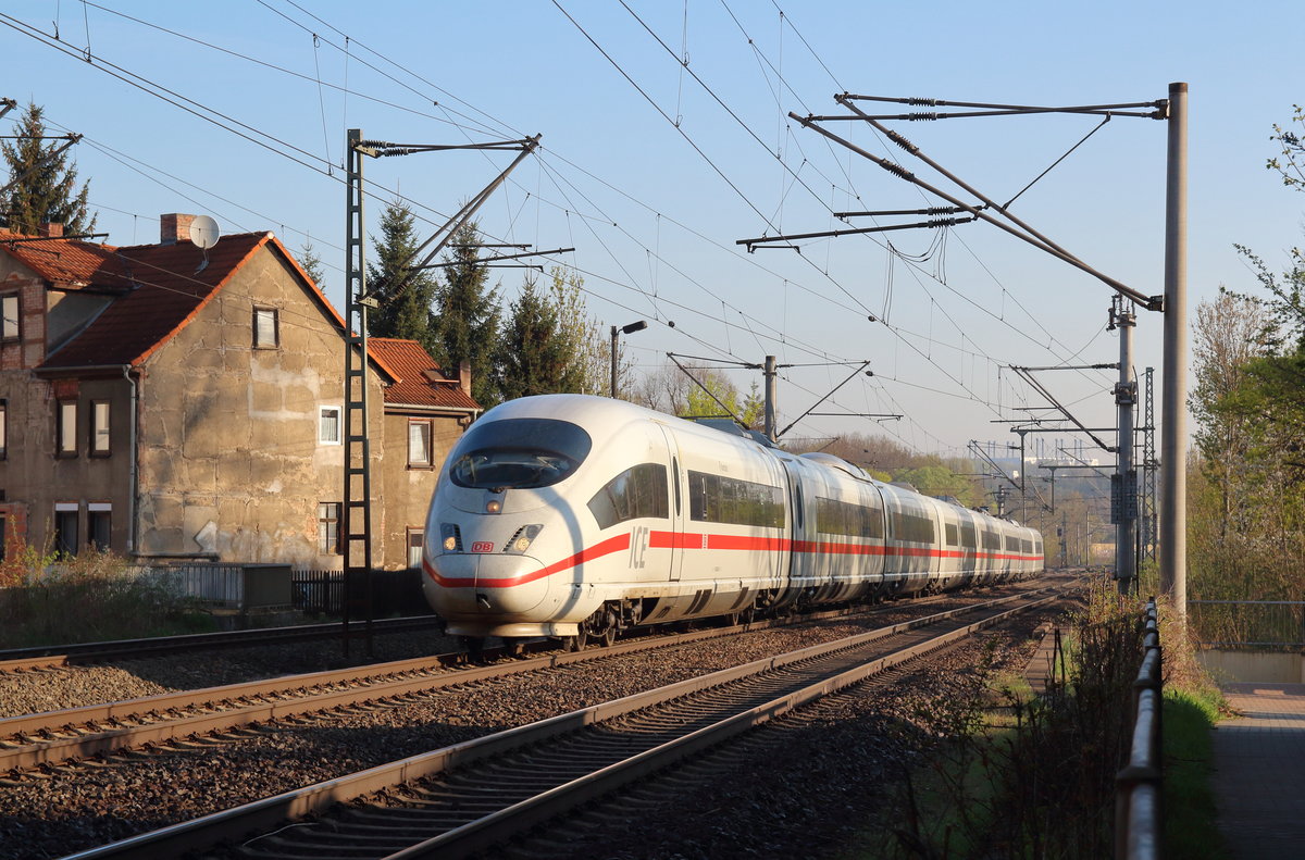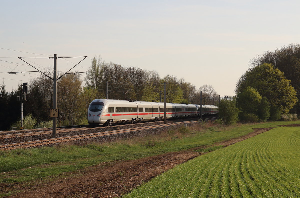 Bei Kilometer 119,6 der Thüringer Bahn konnte ich zwei ICE-T-EInheiten auf dem Wag nach Frankfurt(Main)/Wiesbaden festhalten.