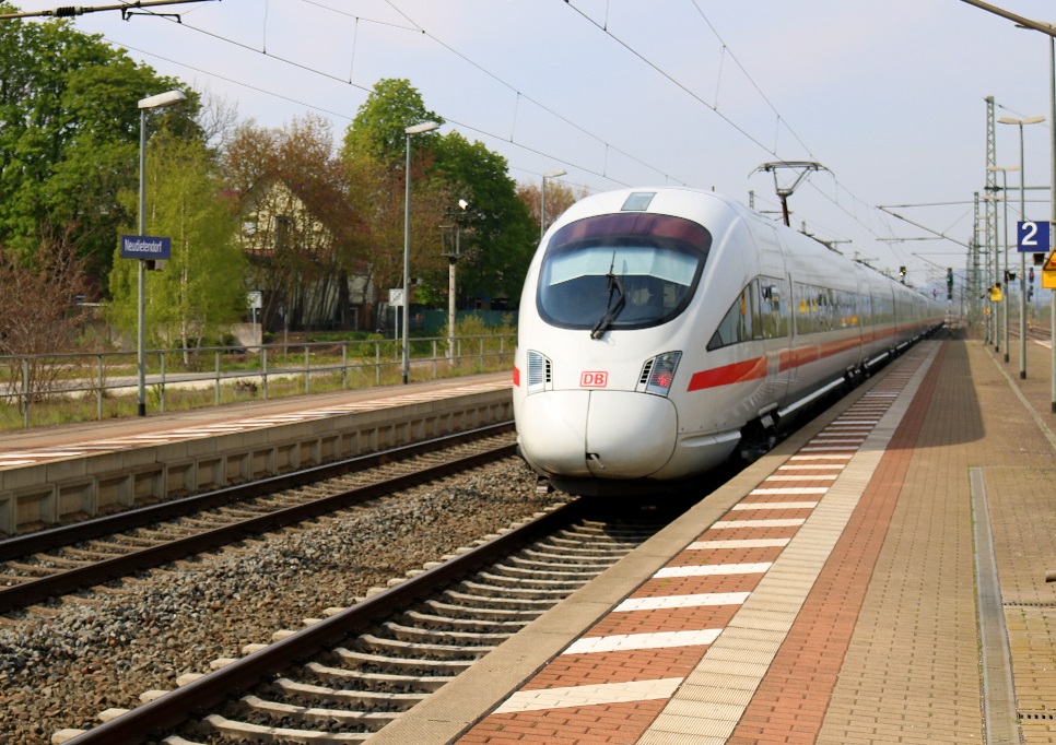 BR 411 (Tz 1191) "Salzburg" als ICE 1555 (Linie 50) von Frankfurt(Main)Hbf nach Dresden Hbf durchfährt den Bahnhof Neudietendorf an der Bahnstrecke Halle–Bebra. [1.5.2017 - 9:47 Uhr] Clemens Kral