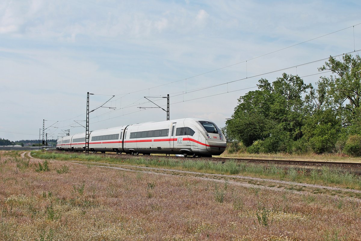 Nachschuss auf 412 044 (9044/0812 044-7), als dieser am Vormittag des 03.06.2020 als ICE 71 (Hamburg Altona - Chur HB) nördlich von Waghäusel über die Rheintalbahn in Richtung Graben-Neudorf/Karlsruhe fuhr. Tobias Schmidt