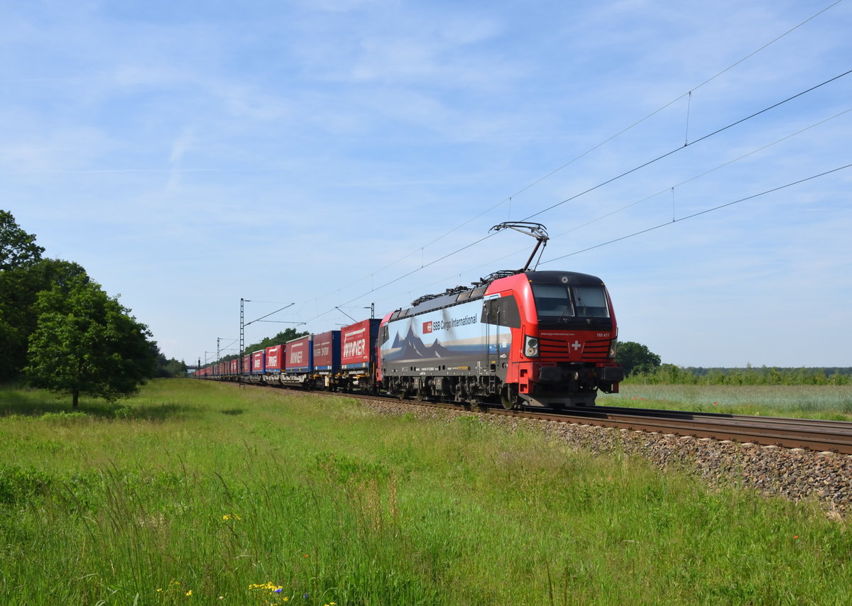 193 331-6 "500. Vectron" mit dem KT 40215 (Zeebrugge Bundel-Luino) bei Wiesental 22.4.20