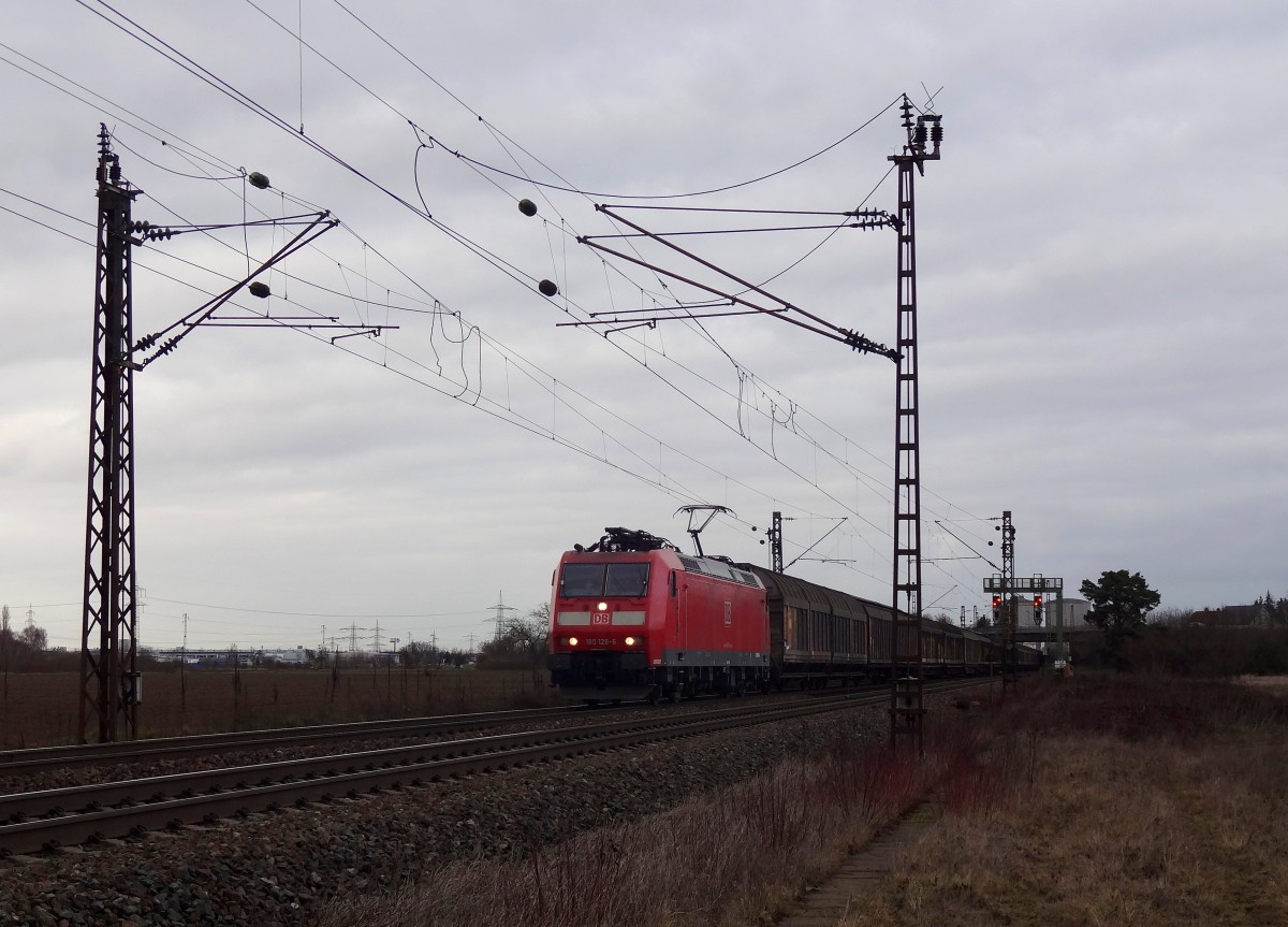 Am 3.1.14 war die 185 128 auf der Rheinbahn zwischen Mannheim und Karlsruhe unterwegs.