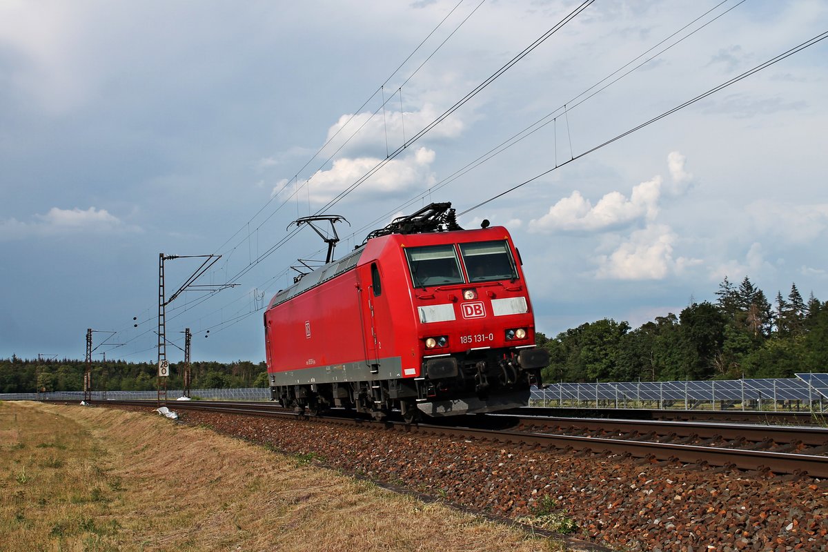Am späten Nachmittag des 03.06.2020 fuhr 185 131-0 als T 67025 (Mannheim Rbf - Offenburg Gbf) zwischen Neulußheim und Waghäusel über die KBS 700 (Rheinbahn) in Richtung Graben-Neudorf. Tobias Schmidt