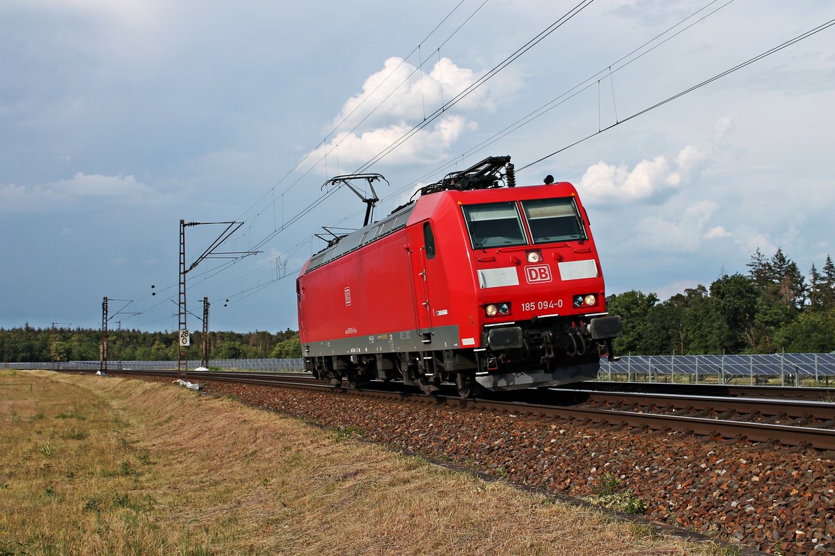 Direkt hinter der 185 131-0 fuhr am späten Nachmittag des 03.06.2020 auch die 185 094-0 als Lokzug T 67080 (Mannheim Rbf - Kehl) zwischen Neulußheim und Waghäusel über die KBS 700 (Rheinbahn) in Richtung Graben-Neudorf. Tobias Schmidt