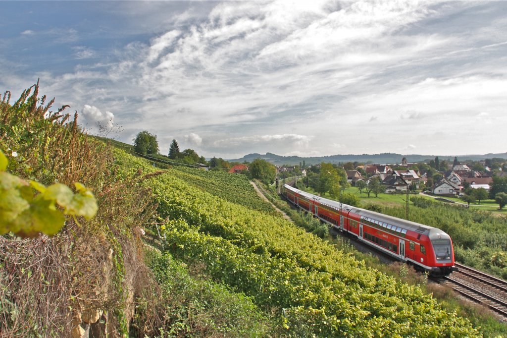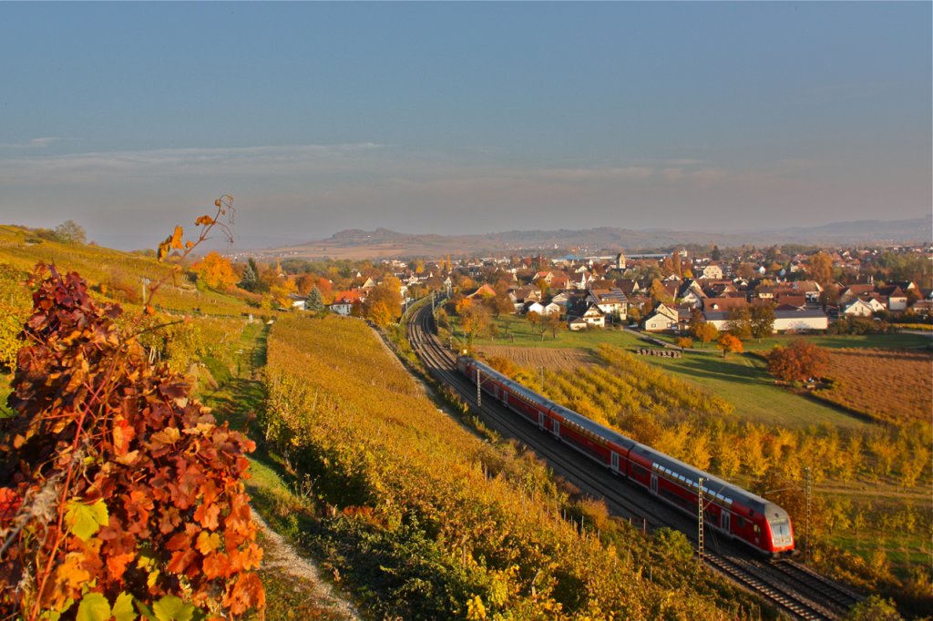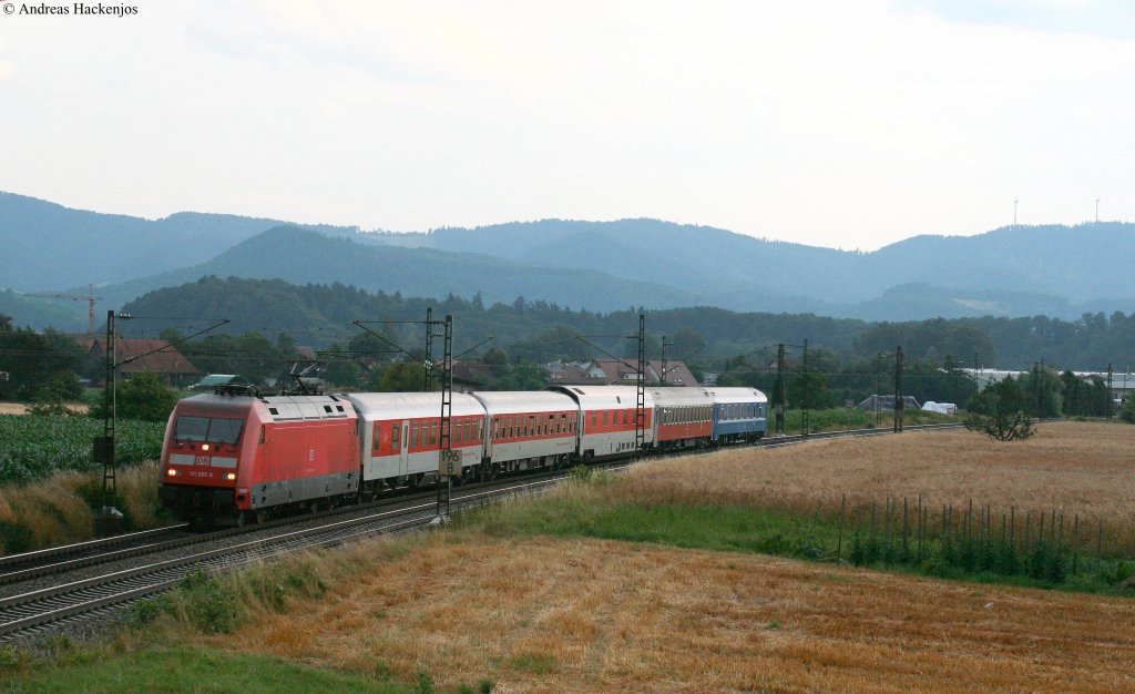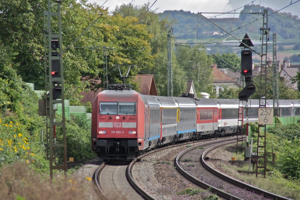 Die 101 093-3 mit einem gemischten Personenwagen Zug bei Istein gen Norden. Mathias D.