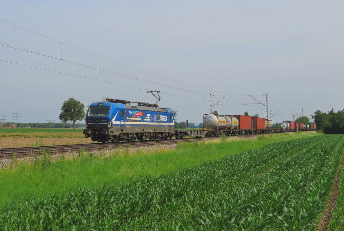 Kenzingen - 29. Juni 2024 : Railpool 186 447 mit einem Kombi in Richtung Süden unterwegs.