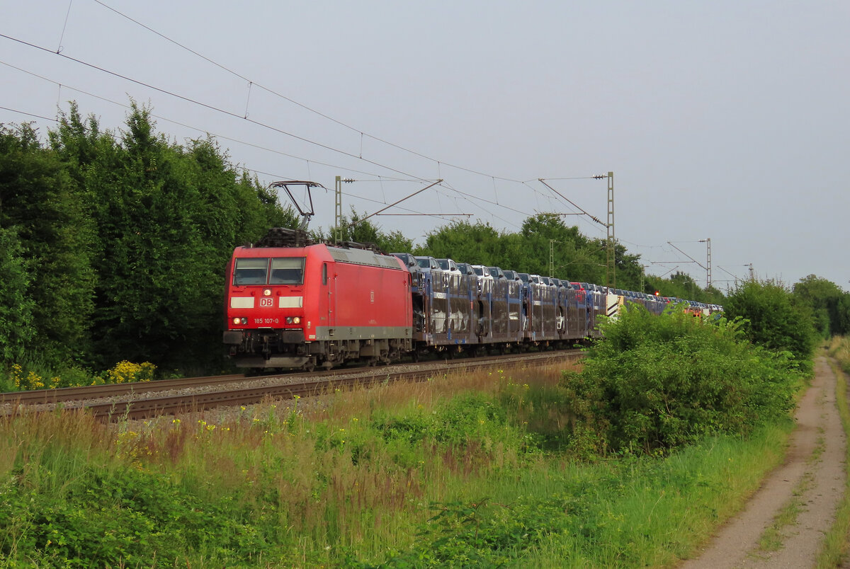 Köndringen - 29. Juni 2024 : 185 107 mit einem Autozug in Richtung Süden unterwegs.