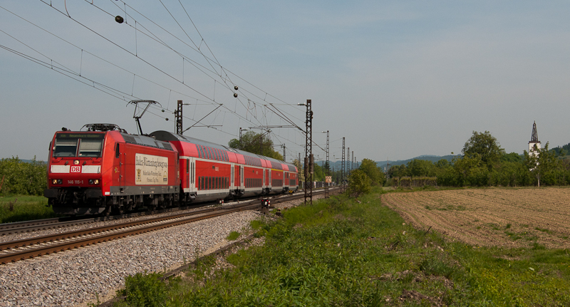 RE 26506 (Basel Bad Bf-Offenburg) mit Schublok 146 229-0 bei Teningen 7.5.11