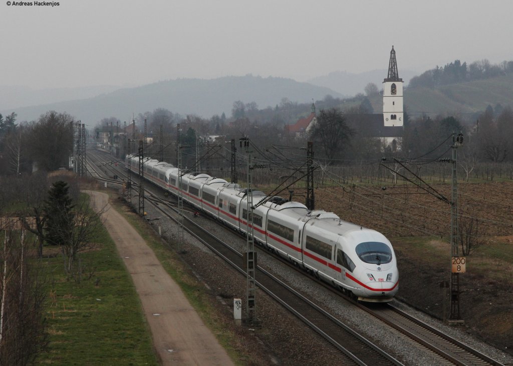 403 002-9 "Hansestadt Lübeck" und 406 007-5 "Hannover" als ICE 504/104 (Basel SBB-Köln Hbf/Amsterdam Centraal) bei Denzlingen 19.2.11 Andreas Hackenjos