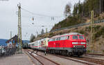 IC 2216 "Höllental" (Seebrugg - Koblenz Hbf) mit 101 013 wird von 218 385 an den Bahnsteig in Seebrugg bereit gestellt 21.2.24