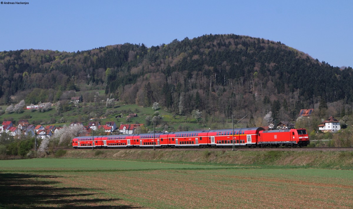 185 074-2 mit dem EZ 44696 (ZH-Limmattal- Kornwestheim Rbf) bei Eutingen 11.4.14