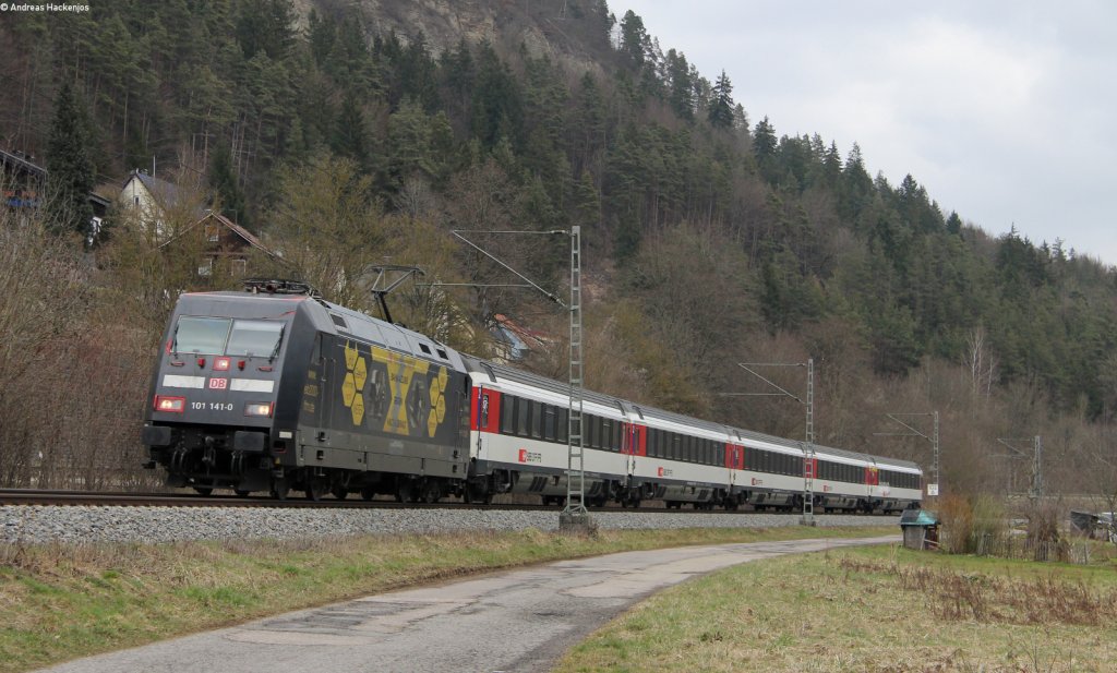 146 201 und 146 225-8 (am Zugende) ziehen den RE 19039 (Stuttgart-Rottweil) dem nächsten Halt Horb entgegen. Normalerweise fährt diese Leistung bis nach Singen (Hohentwiel). Aber wegen Bauarbeiten endet der Zug schon in Rottweil. Aufgenommen am 16.03.2013 bei Eutingen (Gäu). Gregor Kaercher