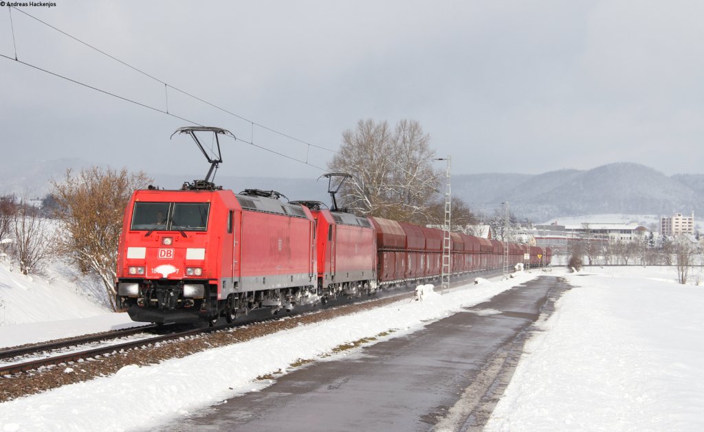 RE 19037 (Stuttgart-Singen(Htw) mit Schublok 146 224-1  Baden Württemberg erfahren  bei Hattingen 15.2.13