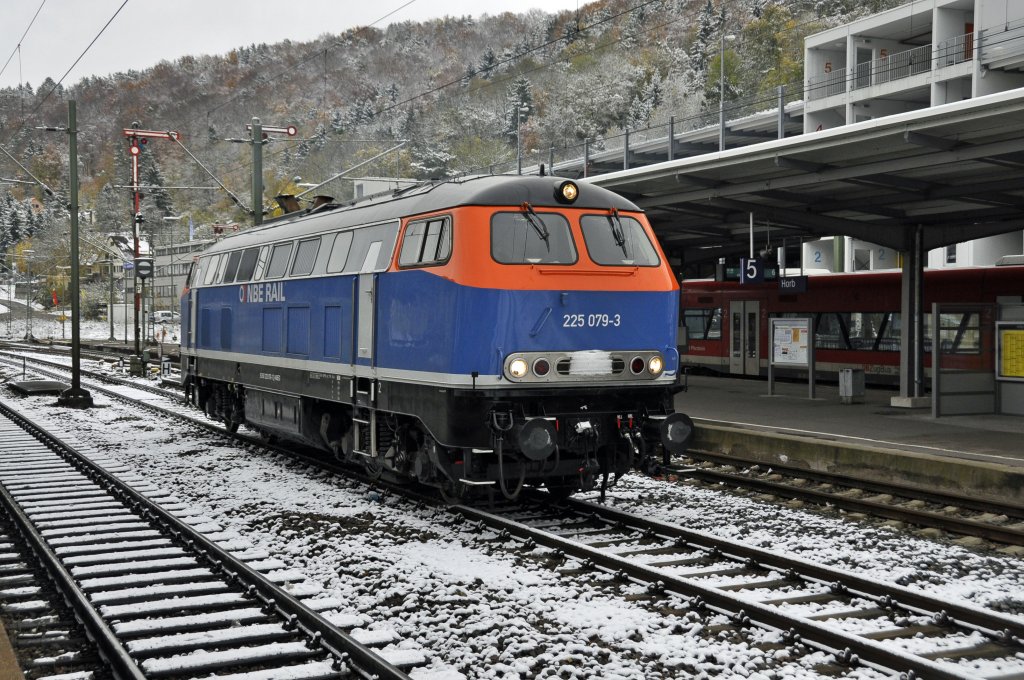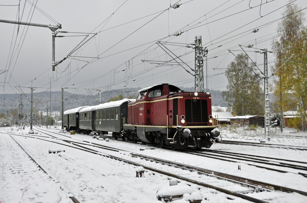 Die V 100 1041 der NeSa(Eisenbahn-Betriebsgesellschaft Neckar-Schwarzwald-Alb mbH) ist im Pendel anläßlich der 4.Rottweiler Dampftage in Einsatz.Sie befördert die Besucher vom Bahnhof Rottweil ins EFZ Domizil.Das Bild entstand am 28.10.2012. Daniel Powalka