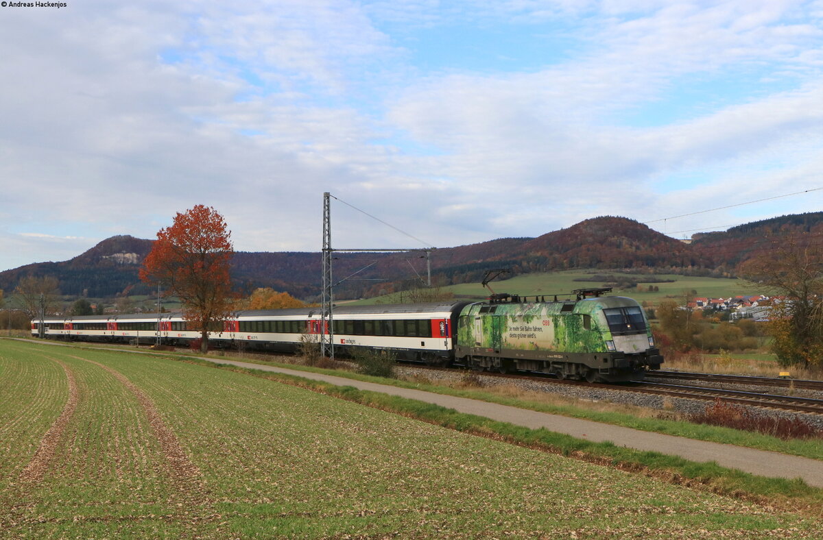 1016 023 "ÖBB Green point" mit dem IC 189/RE 50189 (Stuttgart Hbf-Zürich HB/Singen(Htw)) bei Rietheim 25.10.21