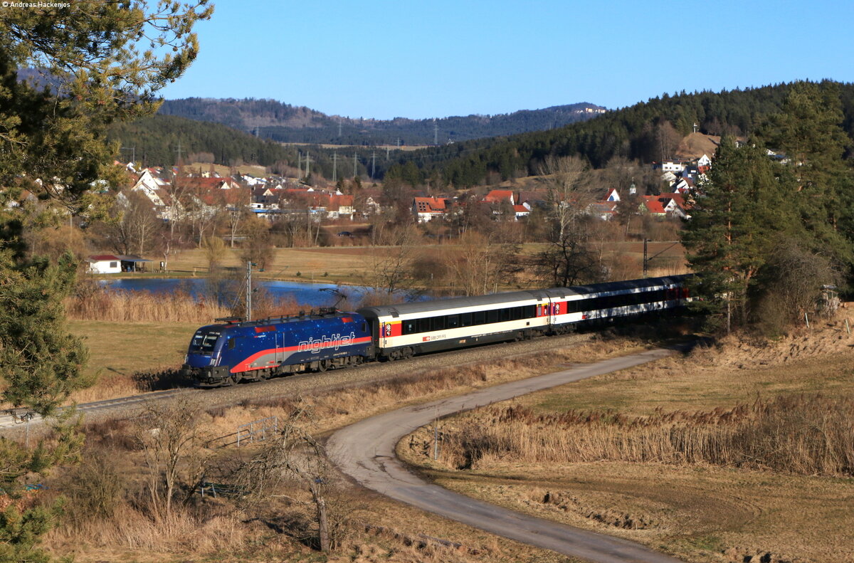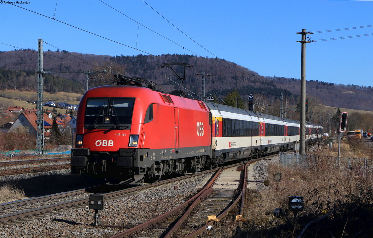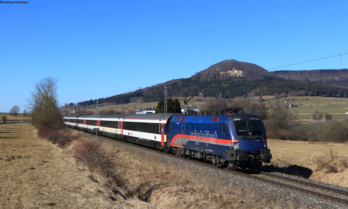1116 195 mit dem IC 187 / RE 50187 (Stuttgart Hbf – Zürich HB/Singen(Htw)) bei Balgheim 27.2.22