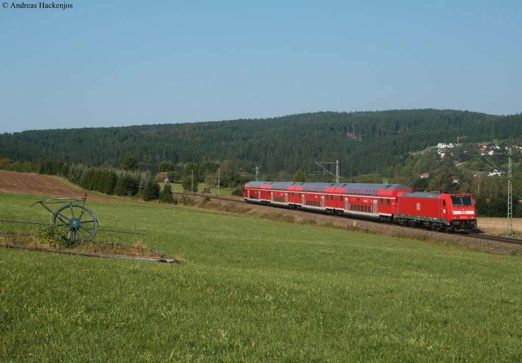 146 209-2 mit dem RE 19606 (Singen(Hohentwiel)-Stuttgart Hbf) bei der Einfahrt Böblingen 27.8.09. Dies ist die einzigste Zugleistung mit n-Wagen auf der Gäubahn! Andreas Hackenjos