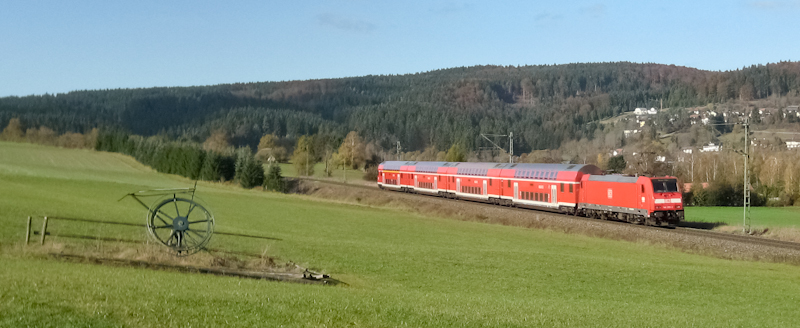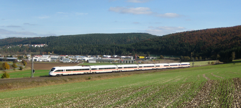 120 122-7 und 110 325-8 "Science Express" mit dem IC 2805 (Stuttgart Hbf-Singen(Hohentwiel))als Ersatz für ICE 283 bei Rottweil Saline 23.8.09 Andreas Hackenjos