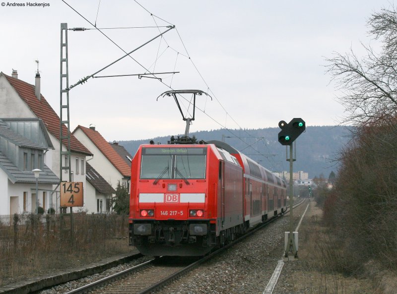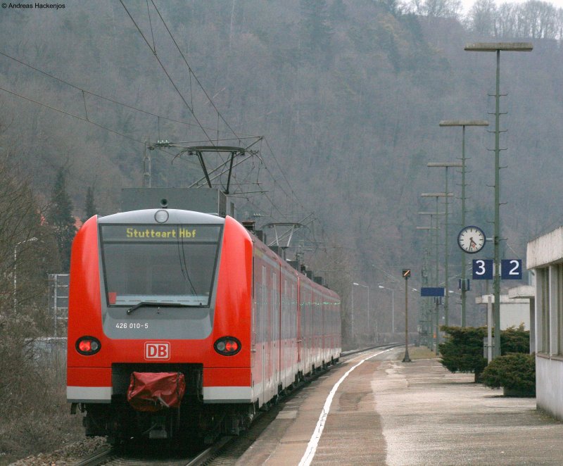 425 303-5 und 426 010-5 als RE 19616 (Singen(Hohentwiel)-Stuttgart Hbf) letzterer geht nach Plochingen (Garniturentausch) bei der Abfahrt Sulz am Neckar 26.2.09