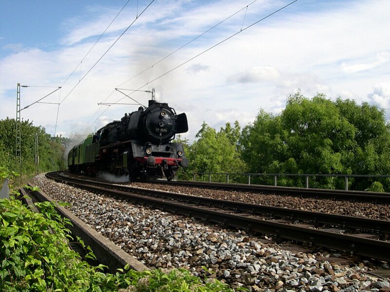 125 Jahre Gäubahn - Zu den festlichkeiten am 12.09.2004 schickte die GES ihre 50 3636 mit dem  Sofazügle , welches normalerweise auf der Strecke Nürtingen - Neuffen zu Hause ist, auf die Gäubahn, und unternahm damit Pendelfahrten zwischen dem Stuttgarter Hbf und Stuttgart-Vaihingen. Hier fährt der Zug auf dem Gegengleis auf der  Panoramabahn  in Richtung Stuttgart-Vaihingen. Und siehe da, die Schlussscheibe an der Lok wurde jetzt entfernt.