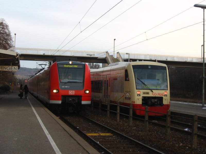 Am 21.07.2007 ergab sich in Stuttgart-Vaihingen eine historisch extrem wertvolle Situation! Wegen einem Streckenproblem auf der Gäubahnstrecke in den Talkessel von Stuttgart, musste nicht nur der Cisalpino aus Mailand, der heute Vergangenheit ist, sondern auch der RE aus Rottweil, mit einem ET 425, angehalten werden. Nur die S-Bahn fuhr normal (hier im Vordergrund) und rundete somit das  Dreierbild der Gäubahn  ab...