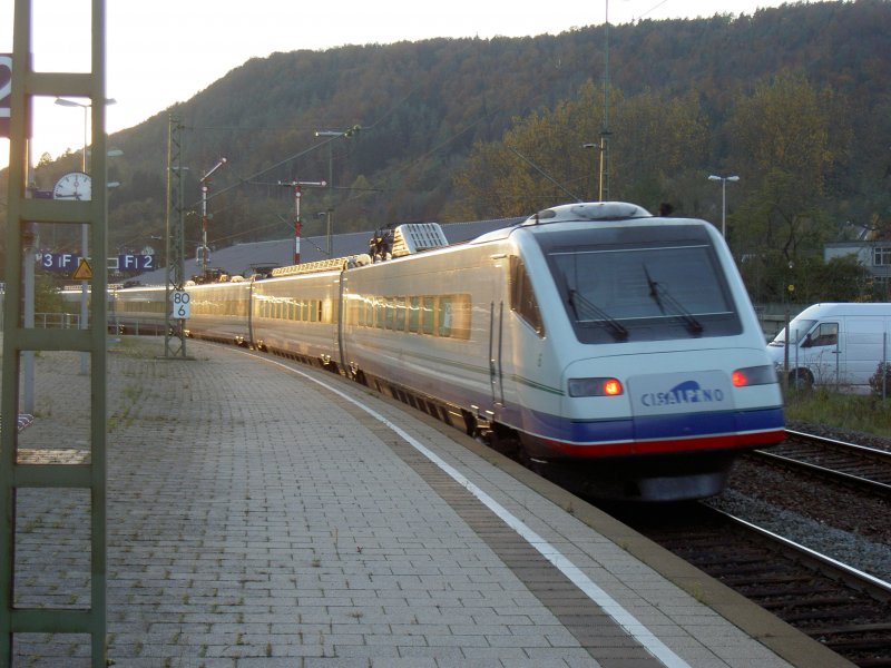 Horb am Necker am 29. Oktober 2006. Ein Cisalpino fährt um kurz nach 17 Uhr nach STrTTGART ;)