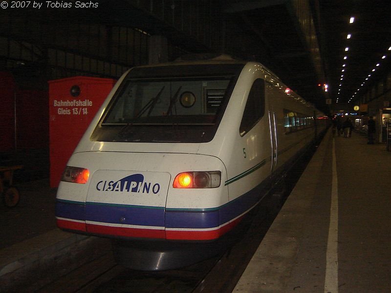Streckenpunkt erneut, mit einem aus Süden kommenden Cisalpino-Ersatzzug am Haken. An der Gäubahn, im November 2006