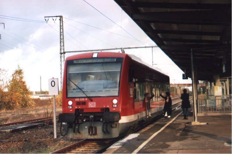 Winke-winke  Hier bringt BR650-026 Anschluß an die Gäubahn: in Eutingen zweigt eine Nebenstrecke ab nach Freudenstadt im Schwarzwald. Ab Eutingen geht es in südlicher Richtung auf der Gäubahn hinab in das Neckartal nach Horb.