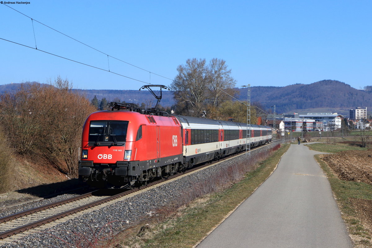 Mit dem IC 281 (Stuttgart Hbf - Zürich HB) fuhr am Abend des 28.05.2020 die 1116 196 bei Möhringen über die Gäubahn in Richtung Singen (Hohentwiel), wo sie ihren Zug an eine Re 4/4 der SBB übergegeben wird. Tobias Schmidt