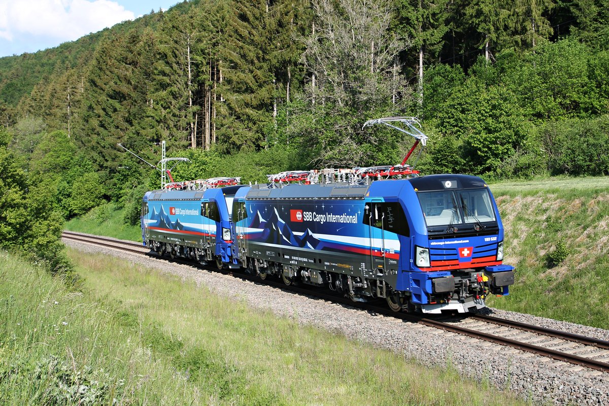 Am Abend des 28.05.2020 fuhr Südleasing/SBBCI 193 532 "Nightpiercer/Rhein" zusammen mit der Südleasing/SBBCI 193 533 "Rhone" als Tfzf 40283 (Regensburg Hbf - Schaffhausen GB) bei Möhringen über die Gäubahn in Richtung Singen (Hohentwiel). Tobias Schmidt