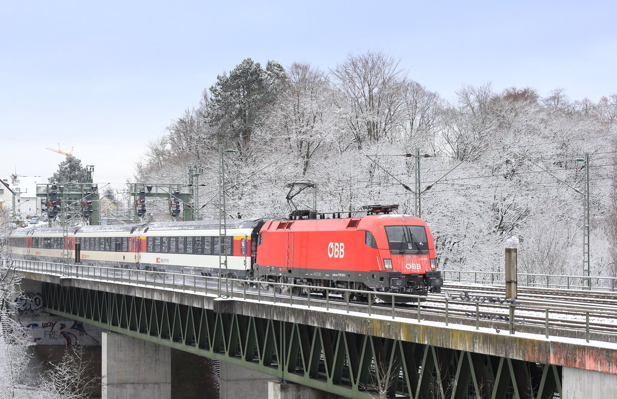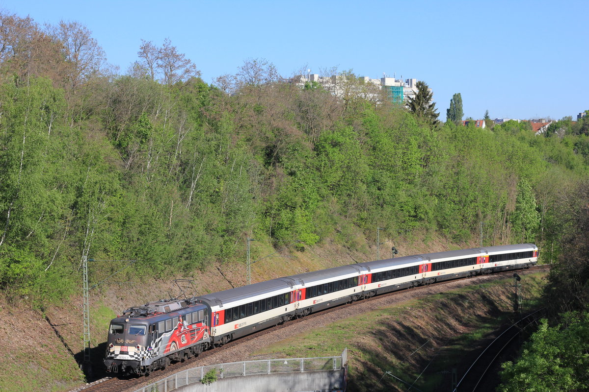 Am 09.05.2017 fährt 101 112 mit IC aus Zürich über die Nesenbachbrücke zwischen Stuttgart-Vaihingen und Stuttgart-Österfeld.