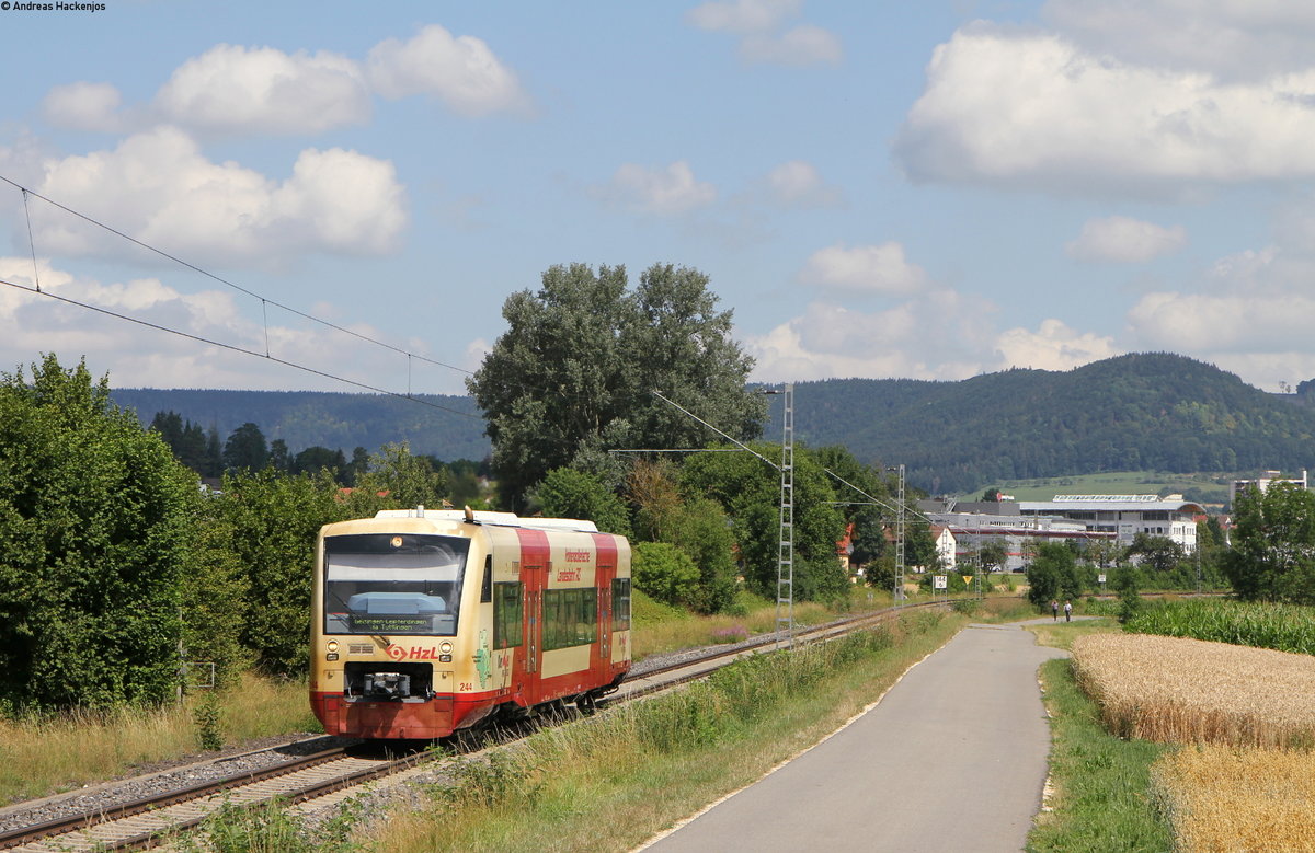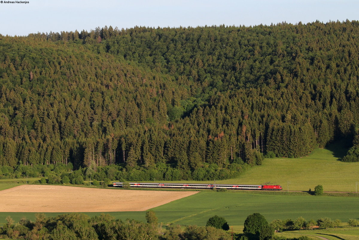 218 249 war am verregneten 27.4.2019 als Überführungsfahrt von Horb nach Mühldorf unterwegs und passierte auf dem Bild den aufgelassenen Haltepunkt Neuhaus (b Spaichingen). Bahnorama