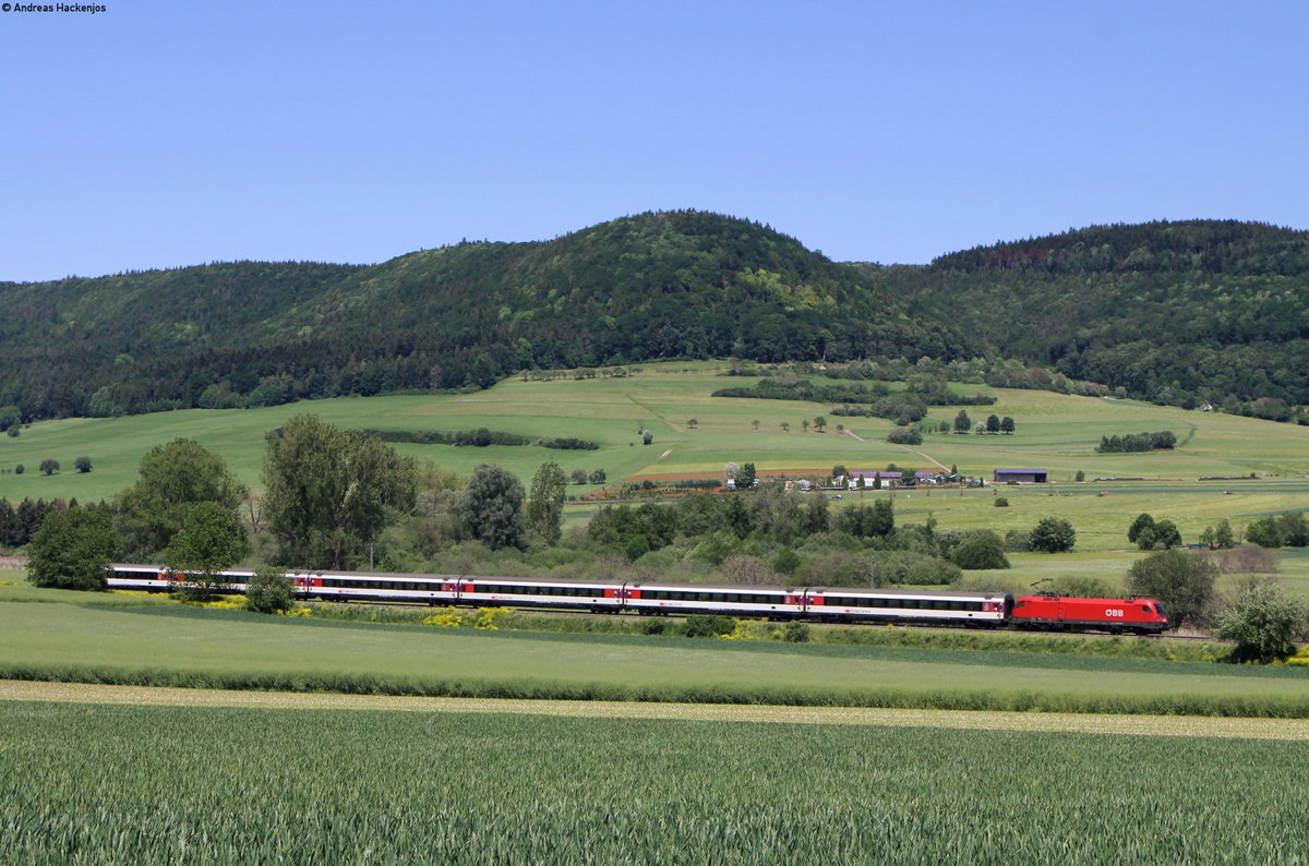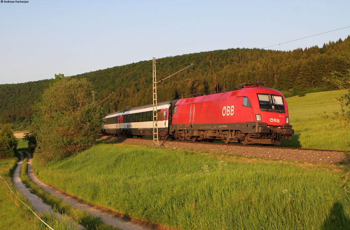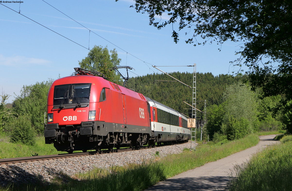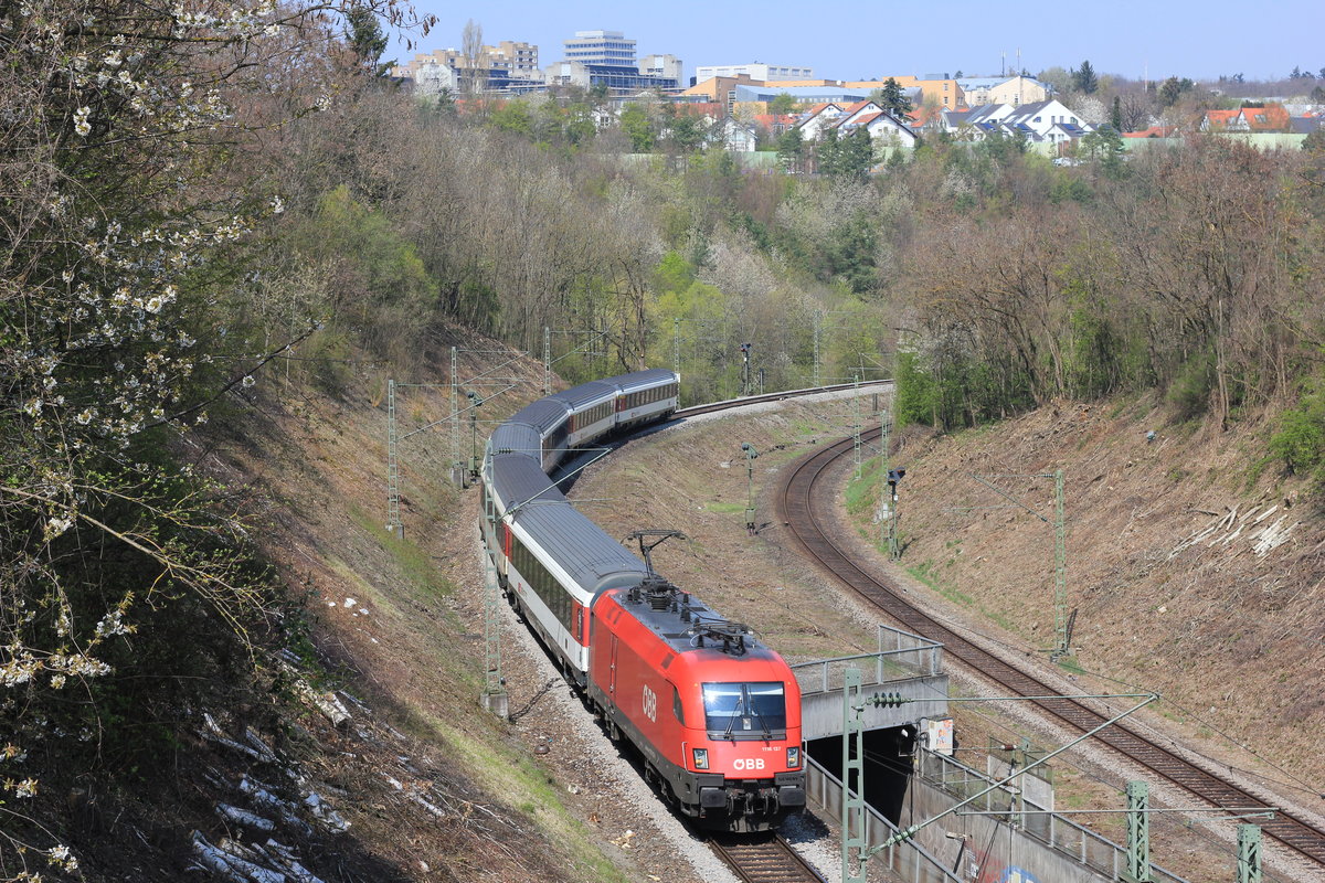 Am 16.04.2019 zieht 1116 137 ihren IC nach Zürich über die Panoramabahn. Die Aufnahme entstand von der sogenannten "Weißen Brücke" nahe der Station Stuttgart-Österfeld. Im Hintergrund befindet sich links die Uni Stuttgart und rechts das Wohngebiet Dachswald. Fluffy