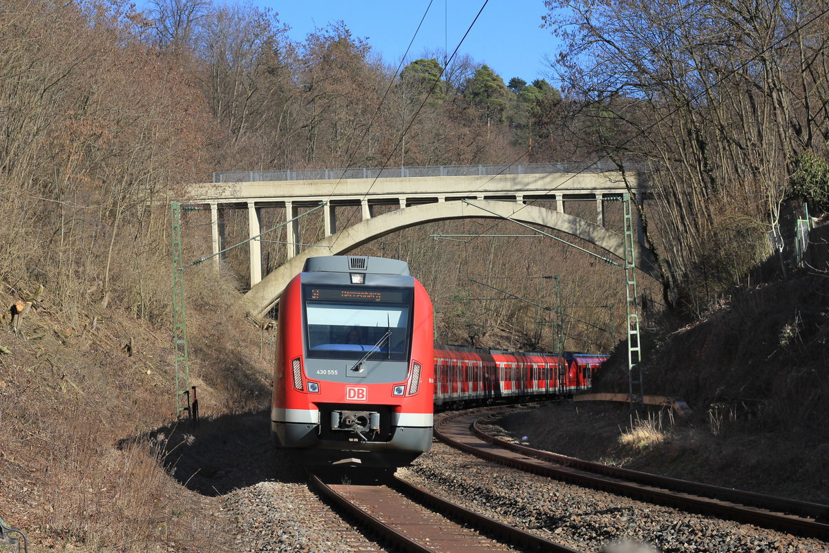 Am 24.01.2019 verkehrt ein Hamsterpärchen von 442 714 angeführt als RE von Stuttgart nach Freudenstadt/Rottweil über die Stuttgarter Panoramabahn unterhalb des Wohngebietes Dachswald. Fluffy