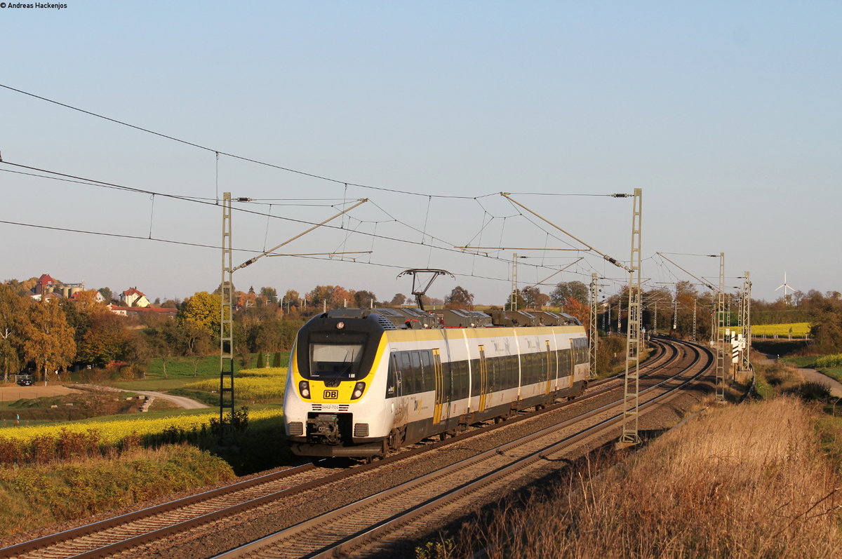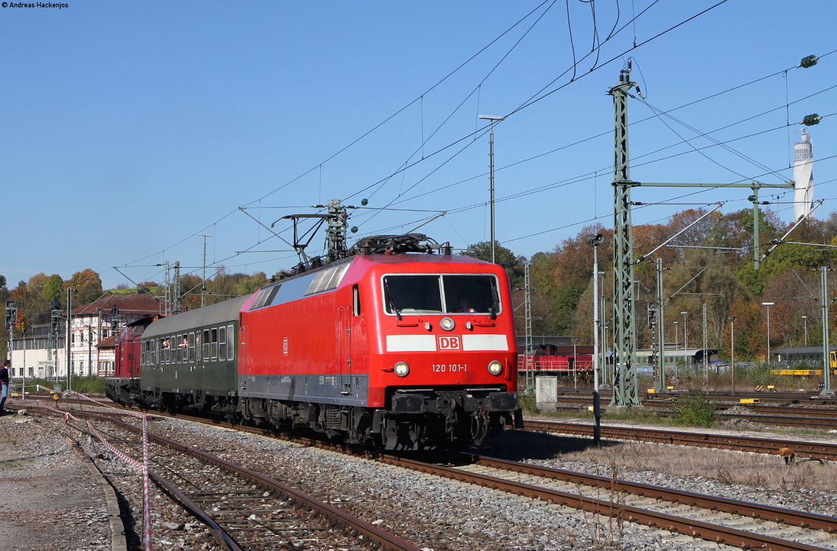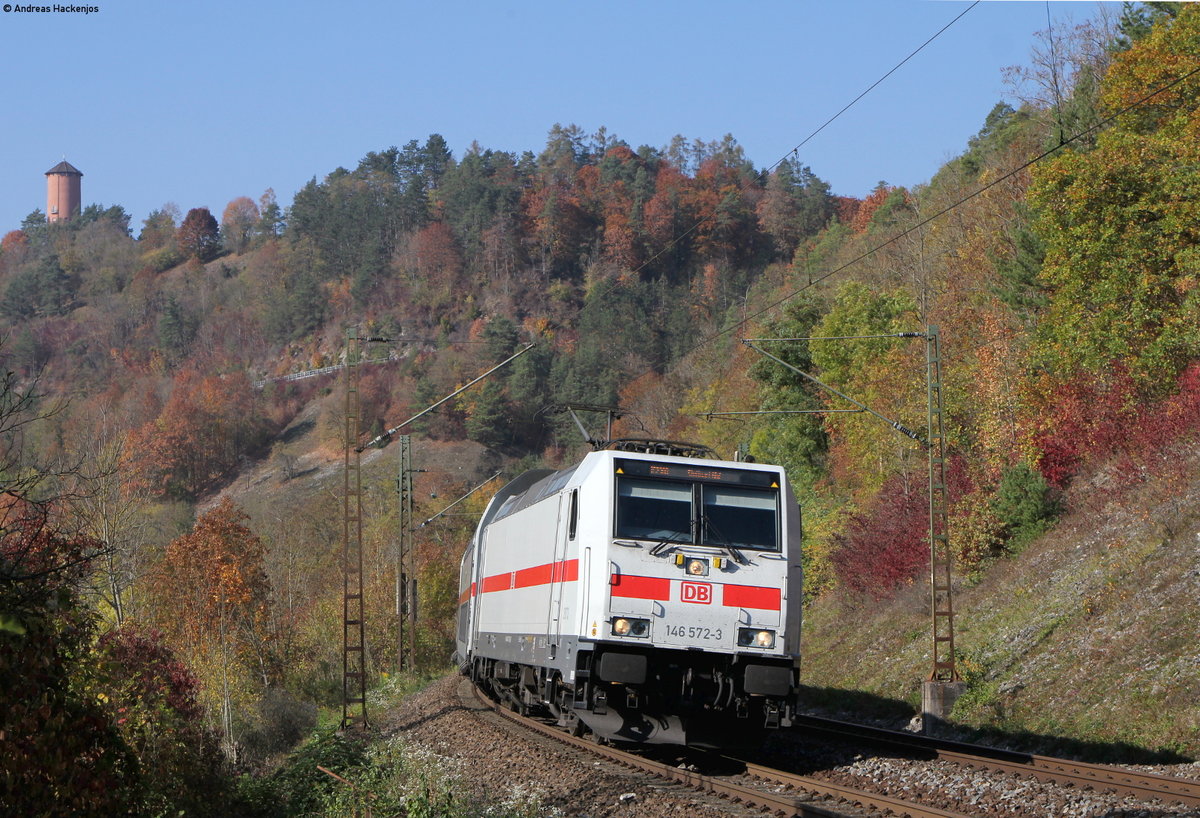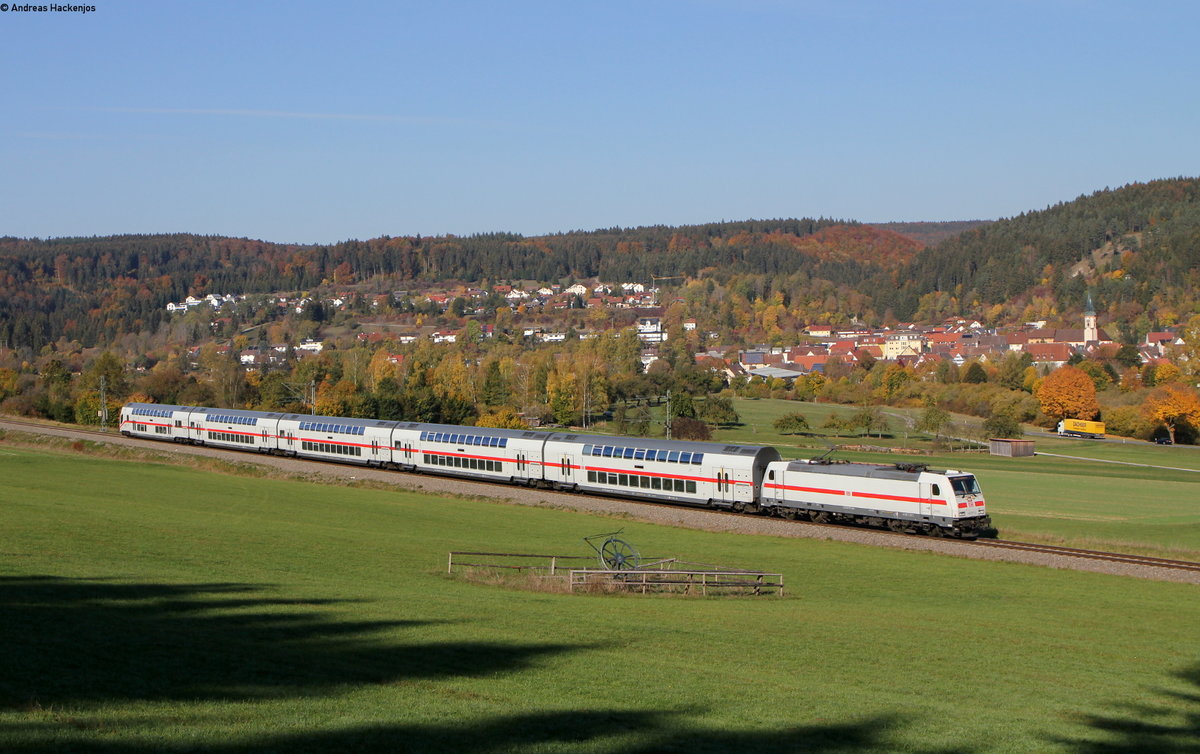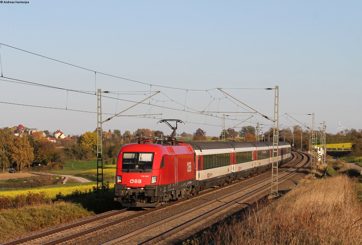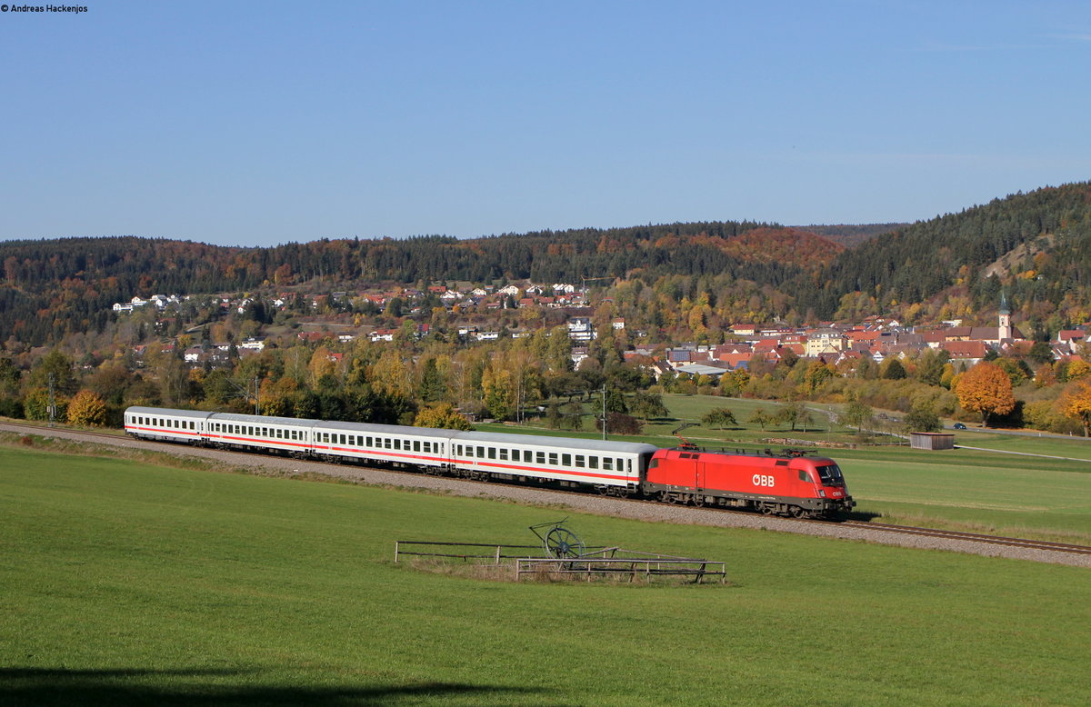 1116 263 mit dem IC 187/RE 50187 (Stuttgart Hbf-Zürich HB/Singen(Htw)) bei Horb 21.10.18. Das rechte Gleis endet vor mir und bis dorthin verläuft ein Weg Andreas Hackenjos