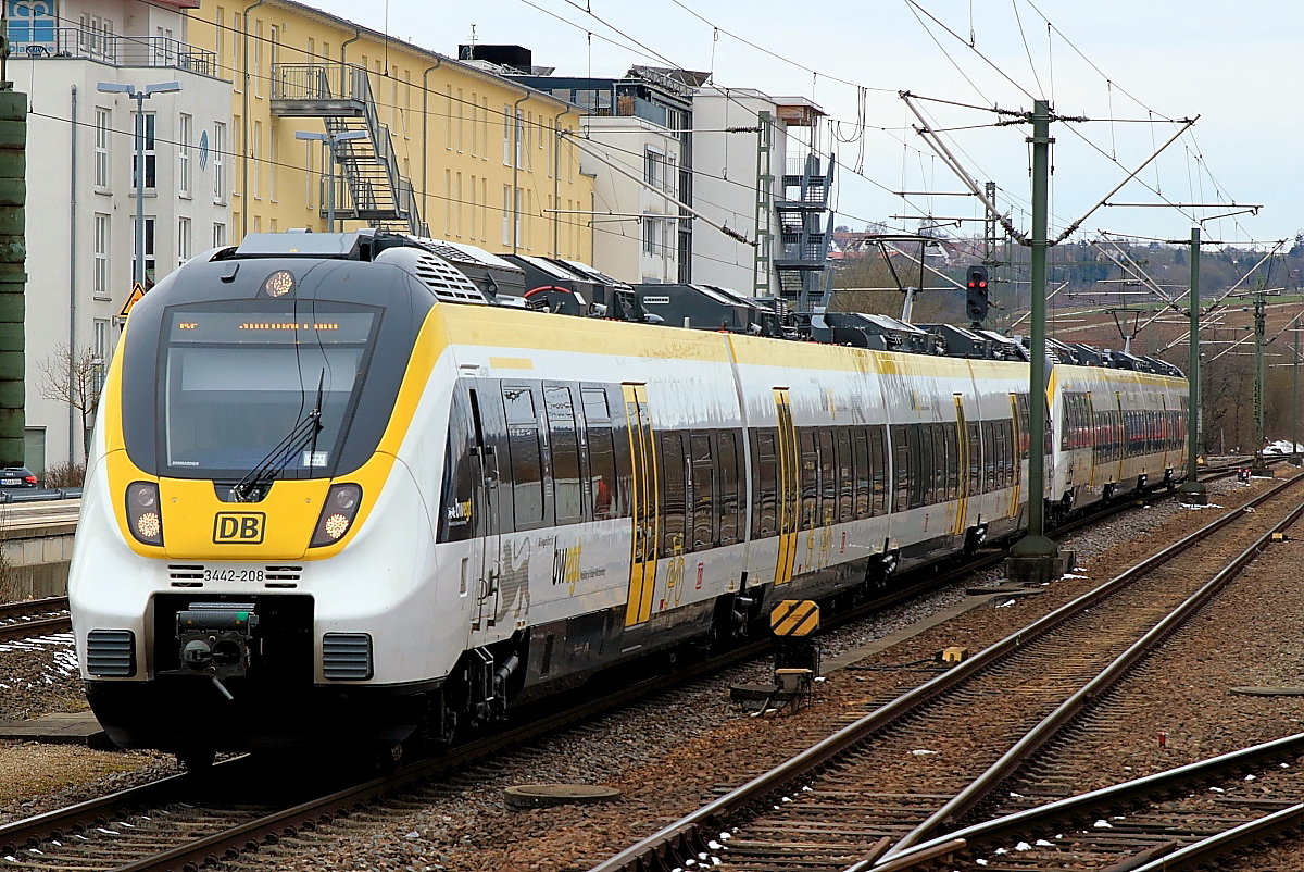 Einfahrt Eutingen im Gäu (6.2.18): RB aus Stuttgart, 3442 206, ein Exemplar der fünften E-Talent-Serie; nach 0, 1, 2 und 9 jetzt mit der Kennziffer 3 versehen. Hermann-Josef Weirich