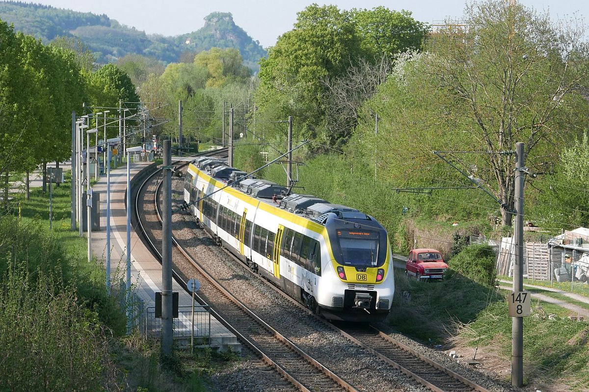Zwischen Singen (Hohentwiel) und Haltestelle Singen Landesgartenschau befinden sich 3 442 205 und 705 am 21.04.2018 als RE 4778 "RADEXPRESS BODENSEE" auf der Fahrt von Konstanz nach Stuttgart. Jürgen Vos