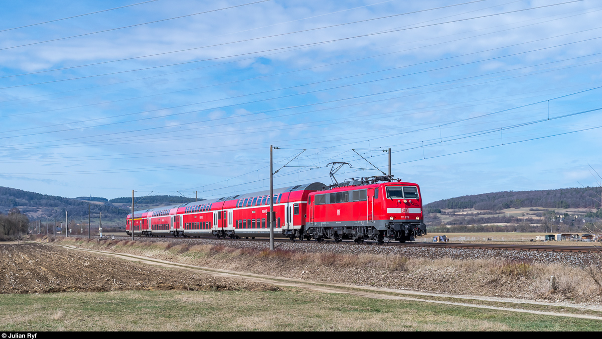 111 050- und 111 058 mit dem RE 19038 (Singen(Htw)-Stuttgart Hbf) auf dem Einödviadukt 12.3.17