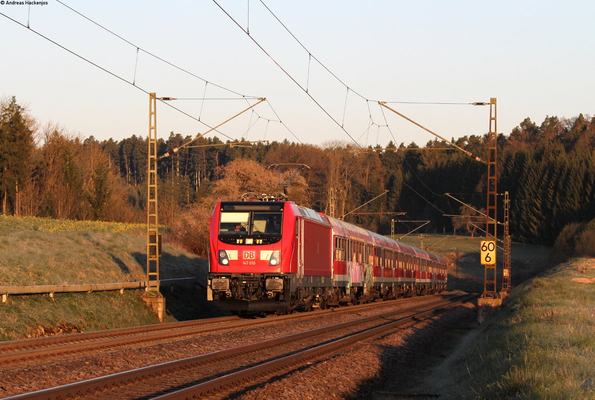 Durch puren Zufall konnte ich 147 019 mit dem RE nach Singen (Htw.) in Böblingen-Hulb fotografieren. Aufnahmedatum: 28. März 2017.