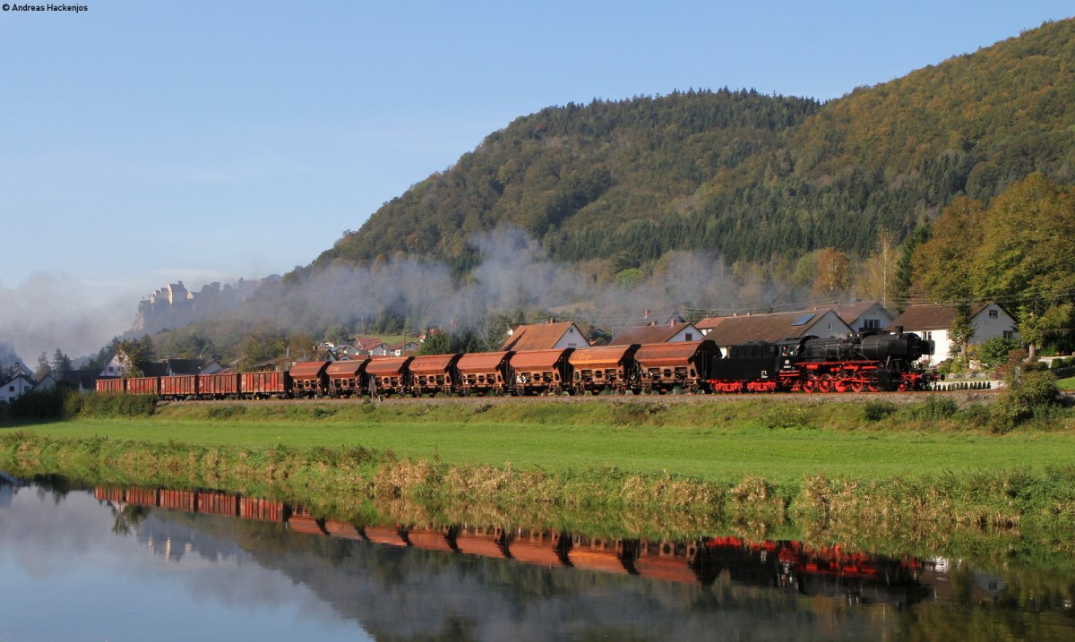 Mit dem DPE 31192 Augsburg Hbf - Ulm - Konstanz am Haken trifft am 25.5.15 218 387 der Kurhessenbahn in Hausen im Tal ein.