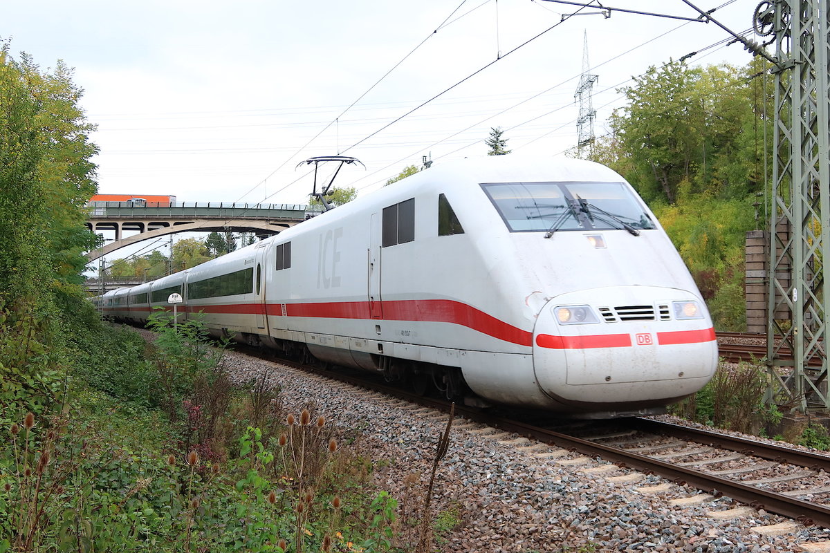 401 513-7 sieht etwas ramponiert aus, als er am 9.Oktober 2020 Stuttgarter Gleise erreicht 🧰 DB 🚝 ICE 597 Berlin Ostbahnhhof - München 🚩 Bahnstrecke KBS 770 (Residenzbahn) 🕓 9.10.2020 | 15:48 Uhr