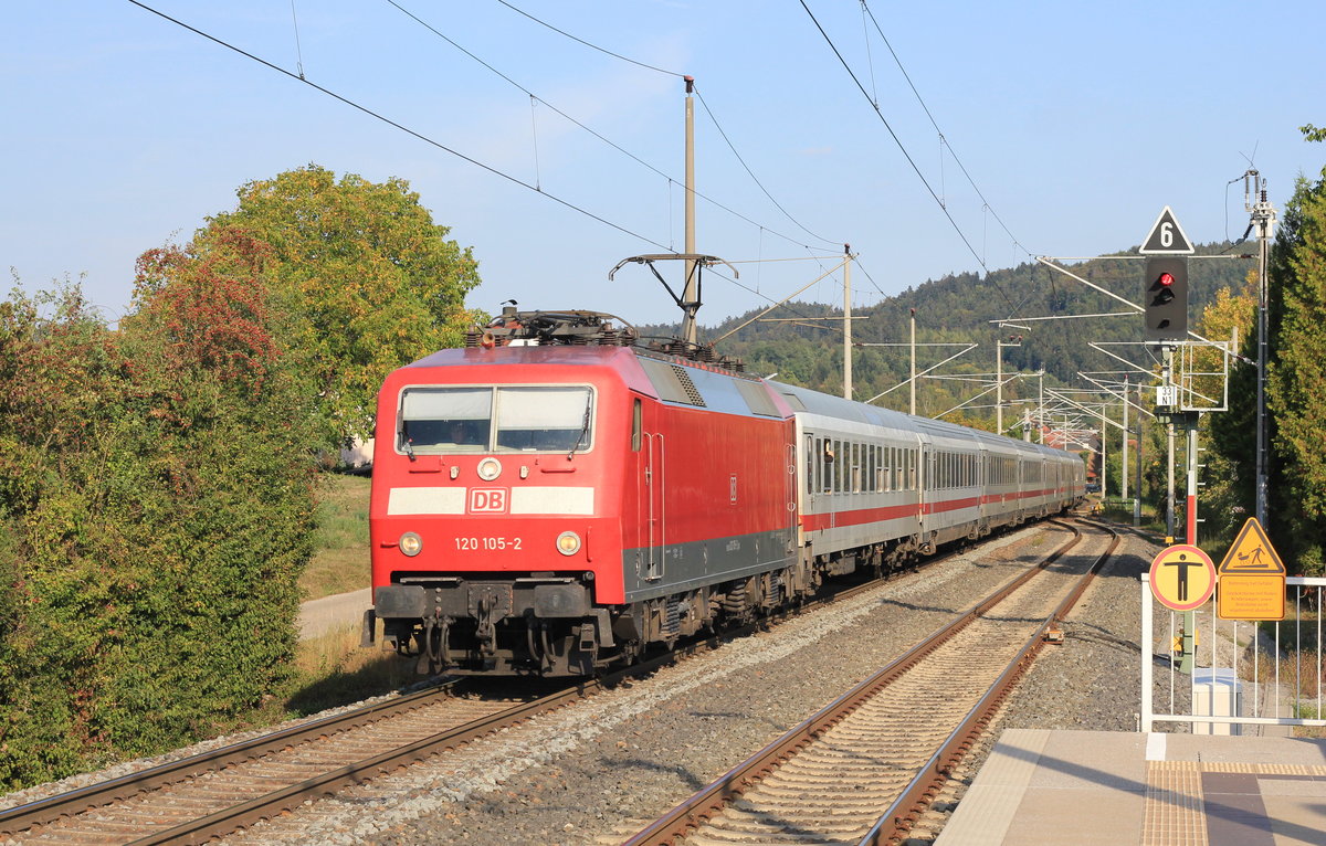 am 05.04.2020 war wunderschönes Wetter weswegen ich mich zur Murrbahn begab. Um ca 19:30 machte ich dieses Foto von einem Grünstreifen IC2 auf dem Umleiter der IC Linie Karlsruhe - Nürnberg welcher aufgrund von Bauarbeiten in Aalen besteht. Foto entstand bei Schleissweiler William L.