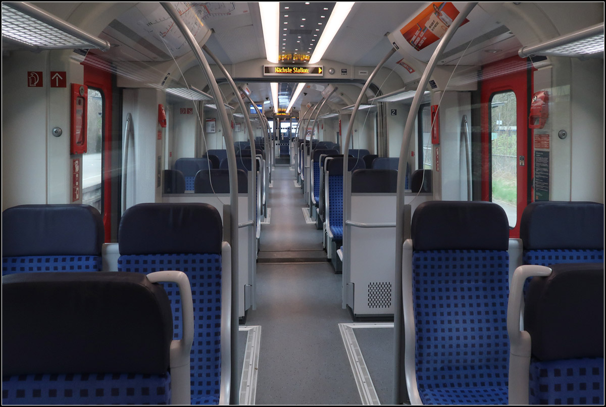 Gerade an einem Sonntagmorgen sind kaum Fahrgäste in der S3 nach Backnang. Die S-Bahn fährt dennoch als Vollzug und macht auch in der Krise ganz unermüdlich ihren Dienst, fast könnte sie einem leid tun, wie wenig sie genutzt wird und aber dennoch sehr stark gebraucht wird.