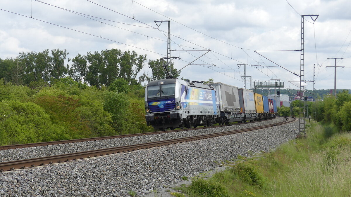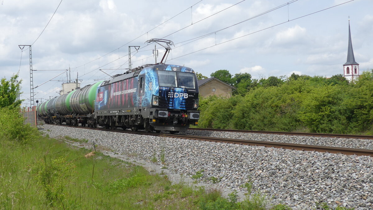 Zum Bundesligaspiel (2. Liga) Hamburger SV gegen SpVgg Greuther Fürth beförderte SBB Cargo 482 019-7 am Abend des 18.05.2025 die Hamburger Fußballfans mit dem Centralbahn-Sonderzug DZ 29068 Fürth/Bay. - Hamburg-Altona durch Dettelbach Bahnhof wieder nach Hause. Das Spiel hatten die Franken mit 3:2 gewonnen. Zum Trost erreichte der Zug die Hansestadt bereits um 03:10 Uhr statt um 04:28 Uhr und war damit 78 Minuten vor Plan am Ziel. Zwischen dem vierten und fünften Wagen erkennt man gut den Neigungswechsel der Strecke im Bahnhof.