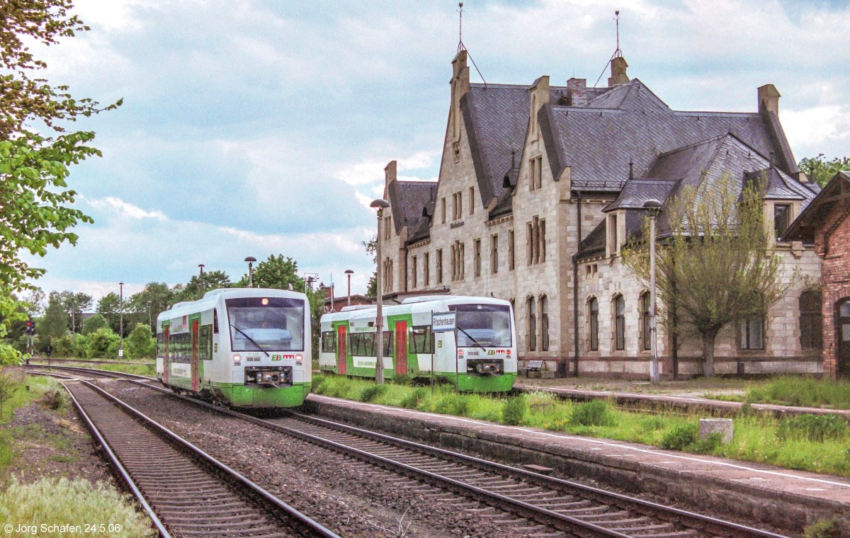 Die Ostseite des Bahnhofs Ritschenhausen war schon am 24.5.06 zugänglich. Man musste sich aber durch Dornengebüsch kämpfen, um dies schöne Aufnahme zu bekommen. Jörg Schäfer