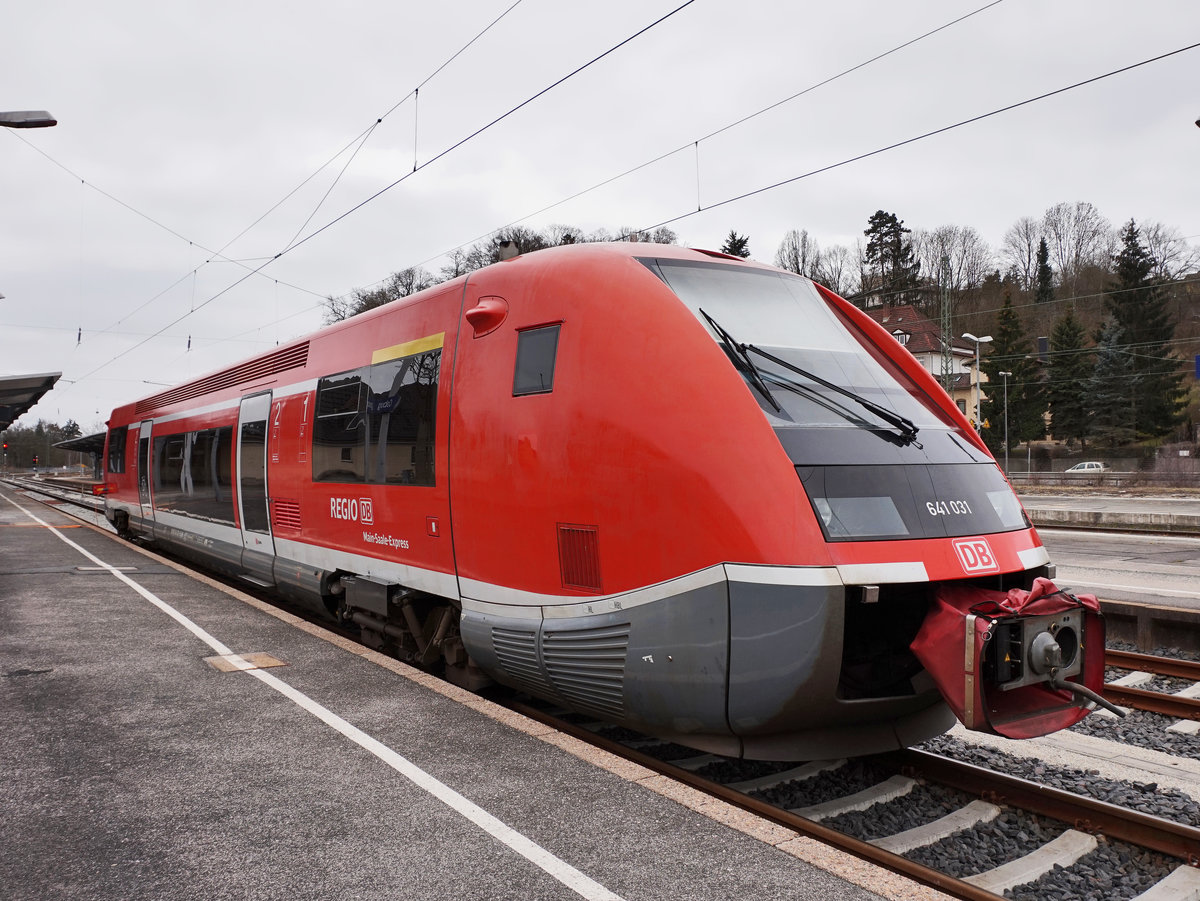 641 031-9 am 23.3.2016 in Coburg. In der Regel sind diese Triebfahrzeuge in Coburg nicht anzutreffen, jedoch kommt es während der Streckensperre zwischen Hallstadt (b Bamberg) und Bad Staffelstein bis 3.9. zu geänderten Fahrzeugumläufen. Nun übernehmen diese Triebfahrzeuge die Fahrten der RE-Züge diese nur zwischen Coburg und Sonneberg (Thür) Hbf pendeln. Hans-Peter Kurz