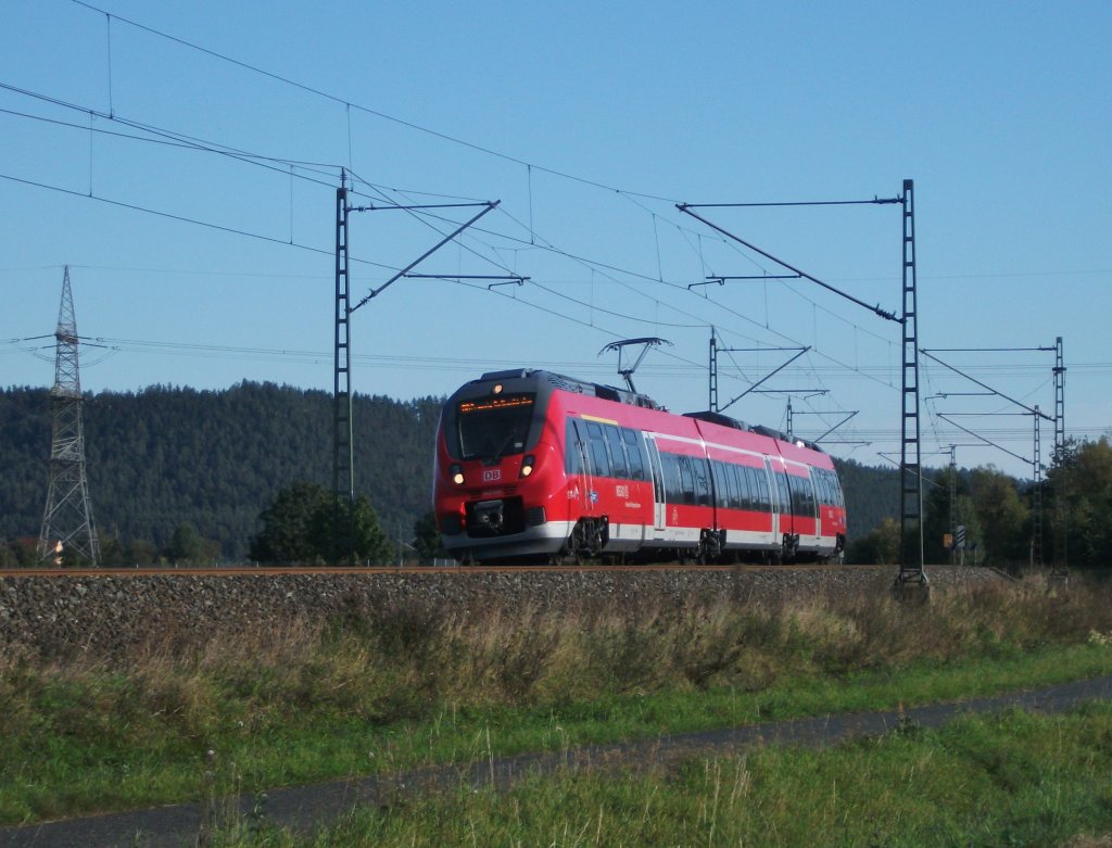 Ein ICE-T ist am 06.10.2012 auf dem Gegengleis in Neuses bei Kronach unterwegs. Grund hierfür war eine RB aus Bamberg nach Pressig-Rothenkirchen, die überholt werden musste. Der ICE hatte etwa 25 min Verspätung. Alexander