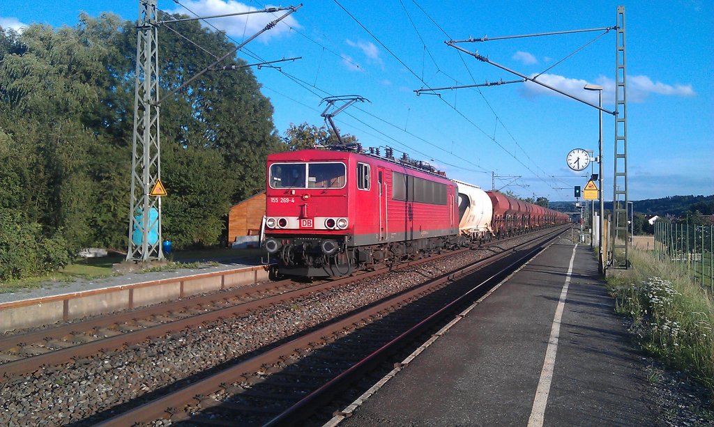 Am 10.08.2012 war 151 032 zum Schiebedienst im Frankenwald eingeteilt. Auf der Fahrt nach Pressig-Rothenkirchen rollt sie durch Förtschendorf Norbert Föller